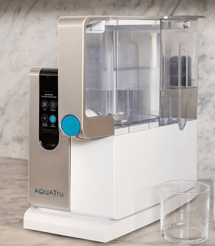 That’s why I use AquaTru, a reverse osmosis purifier that removes 84 contaminants with its patented 4-stage Ultra Reverse-Osmosis® system. It’s independently tested, NSF-certified, and delivers clean, pure water that tastes amazing.